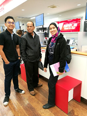 Dari airport ada shuttle from Nippon akan fetch us to their place yang tak berapa jauh dari airport.  So, kami 4 orang saje yang pergi sana, yang lain-lain tinggal kt airport dulu jaga luggage.  Sampai saja di NCR, kami telah diberi taklimat secara detail mengenai selok belok pemanduan kat sana.  So, dengarla betul-betul..if not takut tak faham nanti. Bila dah selesai, depa p amek keta..bila dah ready depa akan panggil nama kita dan assist kita semua ke tempat parking.  Sambil tu, depa brief lagi, cara guna GPS setting in English is a MUST!! Signal, lampu, how to start the car, hand break kat mana, minyak kena penuh bila nak hantar balik semula, pastikan cara pemanduan mengikut undang-undang Jepun. Depa buat kerja memang sangat teliti dan tertip. Setelah selesai serahan kereta, moh la kita g amek kengkawan kat airport.