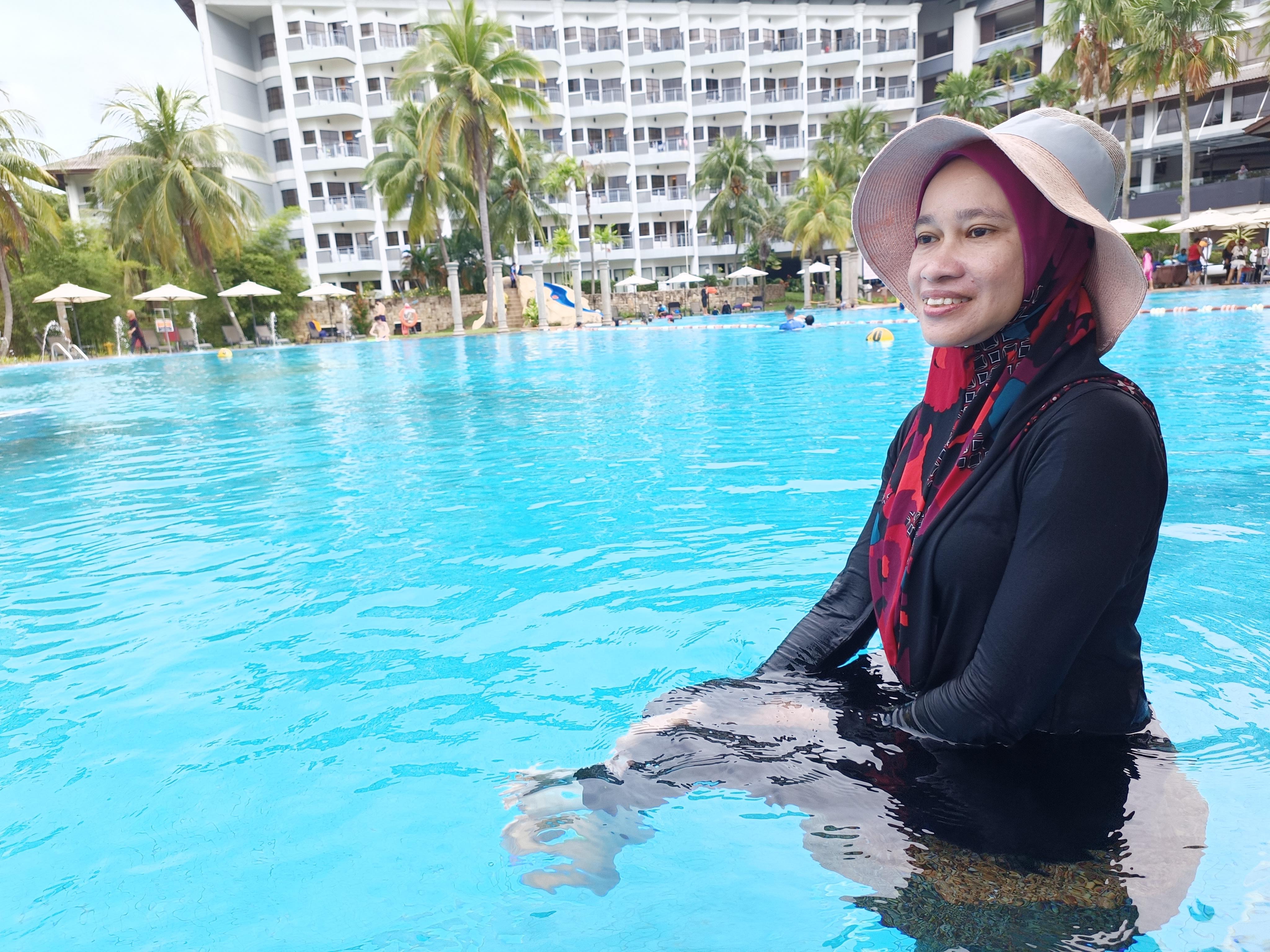 Resort ni dikelilingi alam semulajadi dengan suasana yang damai, permandangan air sunga dan swimming pool dan konsep yang cukup ekslusif dan selesa untuk friends and family. Kawasan ni sesuai jugak untuk buat team building. Maqayla memang tak tahan nak terjun dah tu...hehehe. Tapi tak bolehla sayang, mama dia tak bawa bekalan baju tak plan pun nak rendam-rendam. InsyaAllah next time kita tidur sini..one fine day.